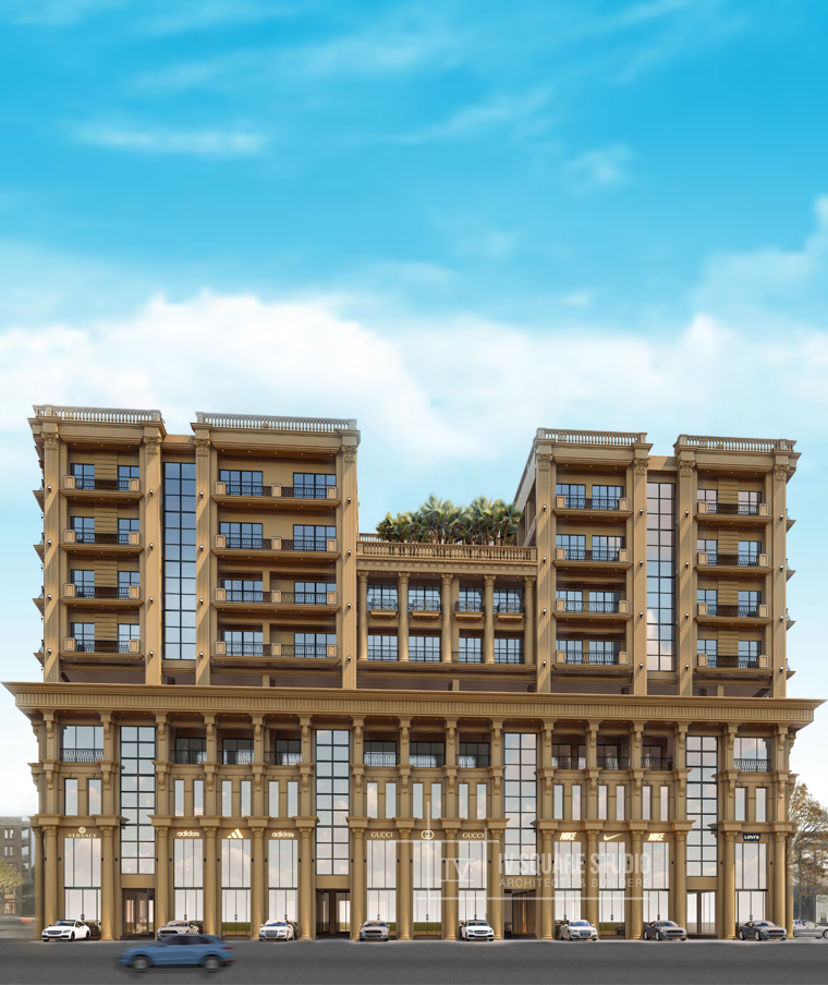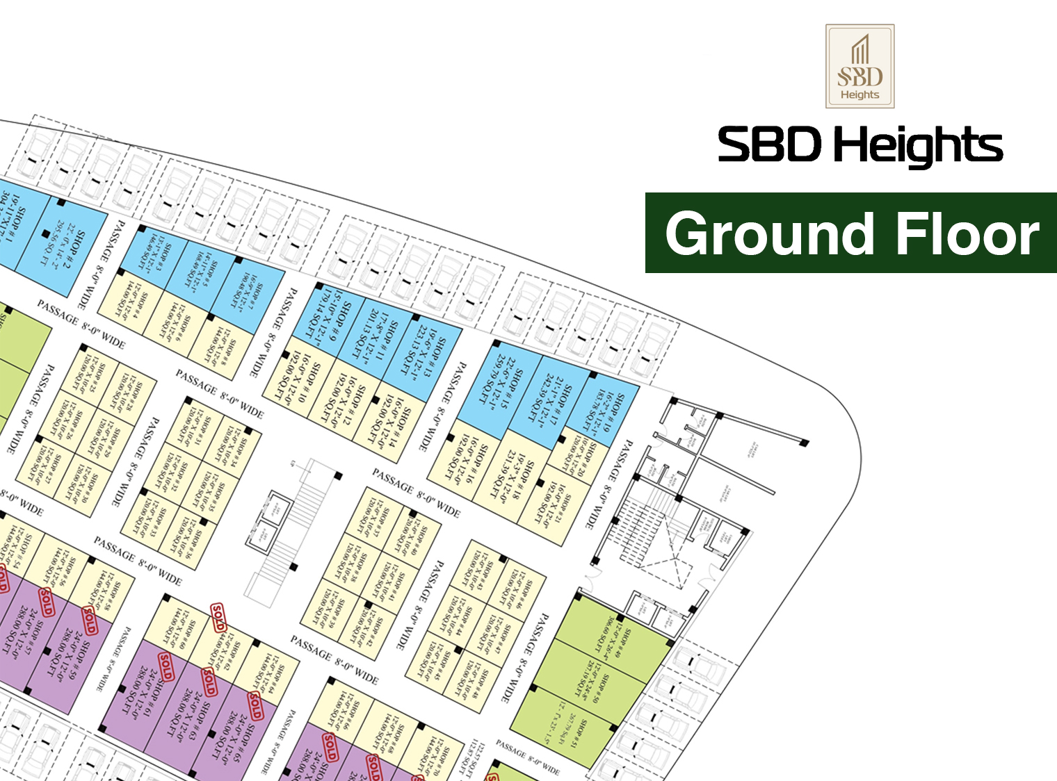 SBD Heights presents an exceptional mixed-use development featuring premium commercial outlets and sophisticated residential apartments designed for modern urban living. The project is structured with multiple blocks—including Premium Block, A Block, B Block, and C Block—each offering distinctive spaces with varying price points to accommodate diverse investment preferences. The development spans from ground level commercial spaces to eight floors, with dedicated residential apartments occupying the upper floors (5th to 8th).