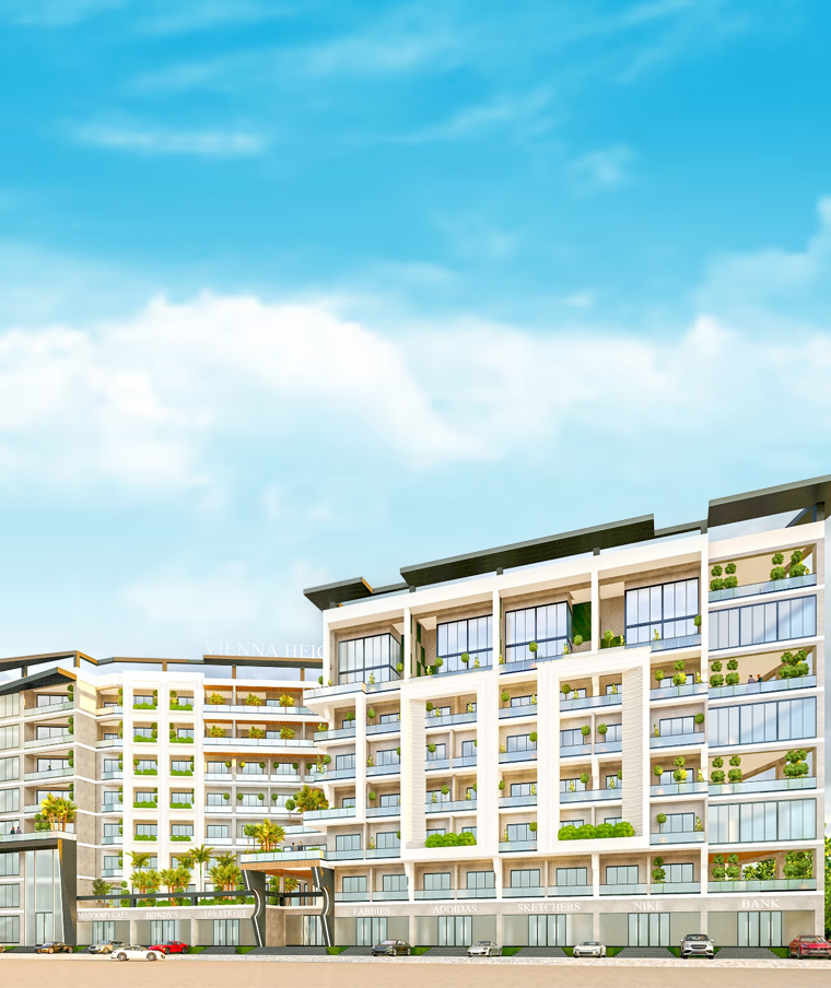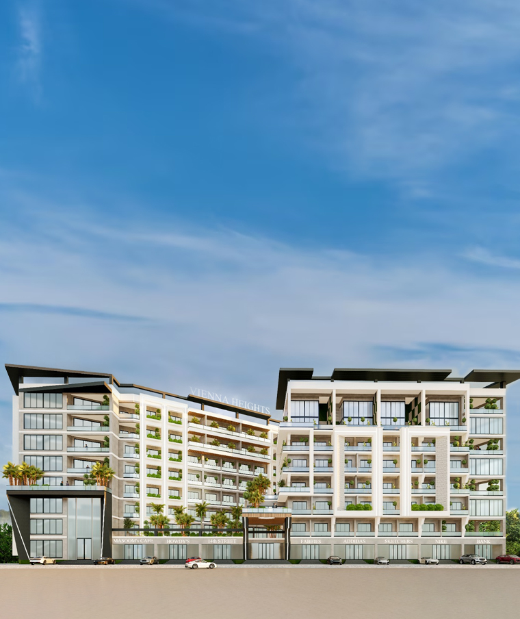 Vienna Heights is a prestigious mixed-use development that seamlessly blends commercial and residential spaces into one sophisticated community. The project features an innovative design with ground-floor commercial shops complemented by five floors of residential units, creating an integrated living experience where convenience and luxury coexist.